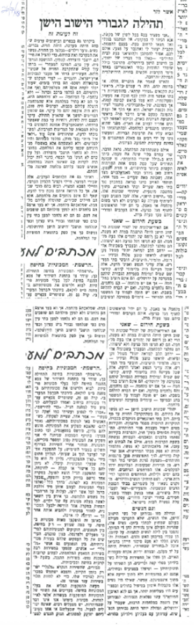 If the ideology of the Jews of the Old Yishuv neighborhoods was in no small measure destructive, their spirit in time of war was quite otherwise. They did not raise a flag of surrender, nor will they raise one. They went forth into battle, and as one passes through these neighborhoods, the heart expands at the sight of a Jew with flowing beard and sidelocks, a steel helmet upon his head and a rifle in his hands. Yeshiva students, dwellers of the study halls — gentle souls and refined minds, whose entire world had been sacred learning — sanctified the Name of Heaven and of the homeland through their courageous stand in the campaign for Jerusalem. They do not desire war — but if there is war, they fight, and they fight properly. If it is necessary to fight on the Sabbath, and if it is a duty to stand guard on festival days — they stand in battle and return fire.