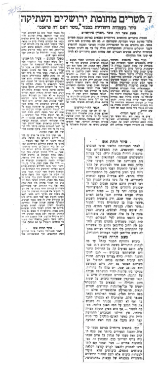 The Jewish fighting forces in Jerusalem are stationed only seven meters from the walls of the Old City. From this position, which they have held since May 19th, they have repelled all assaults by the Arab Legion attempting to break into Jewish Jerusalem. These assaults have cost the Arab Legion dozens of dead, wounded, and captured soldiers, without displacing the Jewish defensive positions by even an inch.